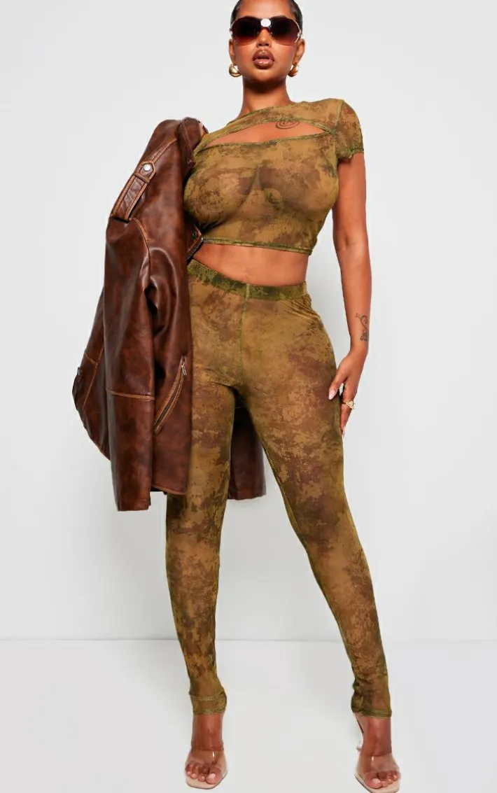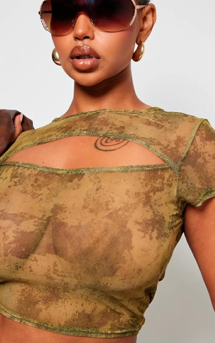 Bring all the drama to your weekend look with this shape green mesh tie dye print cut out front crop top. Made from a green mesh material with a tie dye print design, cut out front detailing and a cropped fit, we are obsessed. Pair this crop top with the matching pants, heels and gold accessories for a look that is sure to make you stand out from the rest.