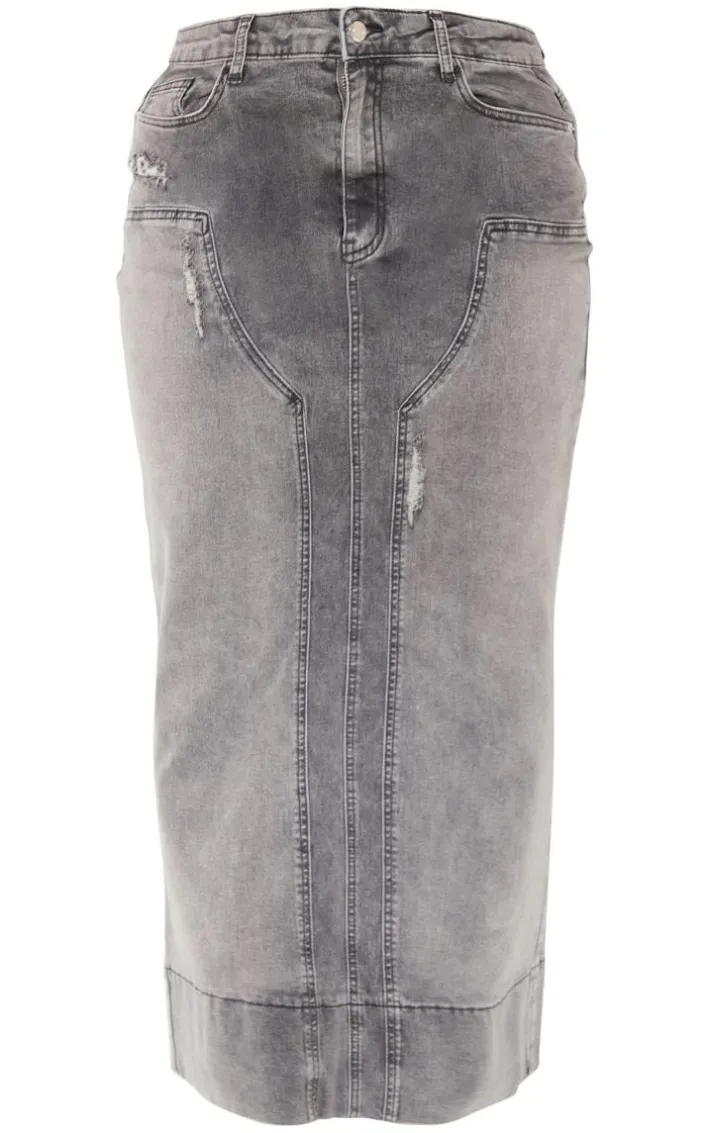 Nail new season trends in this shape grey denim washed maxi skirt. Brought to you in a grey hue washed denim material with a maxi fit, we just can’t get enough. Style this denim maxi skirt with the matching top and clear strap heels for a look that is sure to earn you some serious style points no matter what your weekend plans.