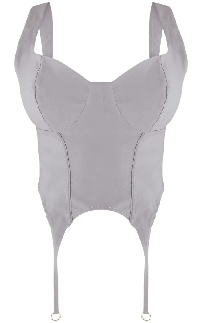 Your wardrobe is calling out for this shape grey stretch woven suspender detail corset top for your new season look. Brought to you in a grey stretch material with a woven design and suspender detail. With its flattering fit, how could you resist? Team with a gold hoops and clear heels for a weekend-worthy finish.