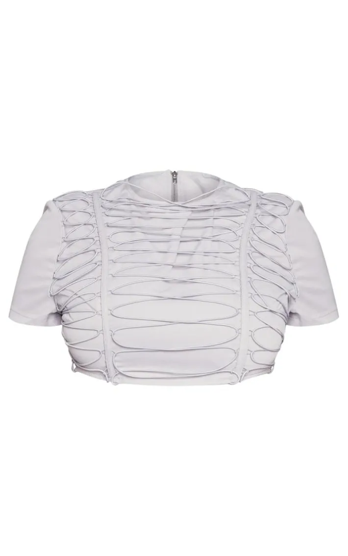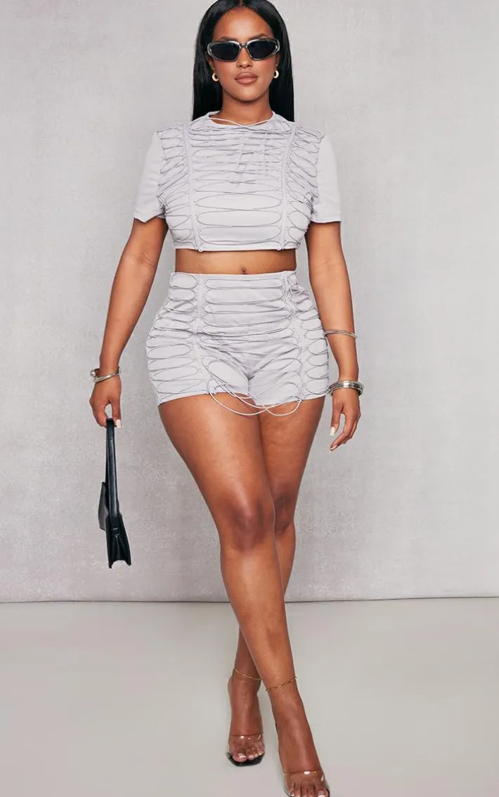 Take your weekend look to the next level with this shape grey woven lace up detail cropped t-shirt. Brought to you in a grey hue woven material with a dramatic lace up design and a cropped fit, how can you resist? We are loving this cropped tee styled with the matching shorts and clear strap heels for a look that is sure to make heads turn wherever you go.