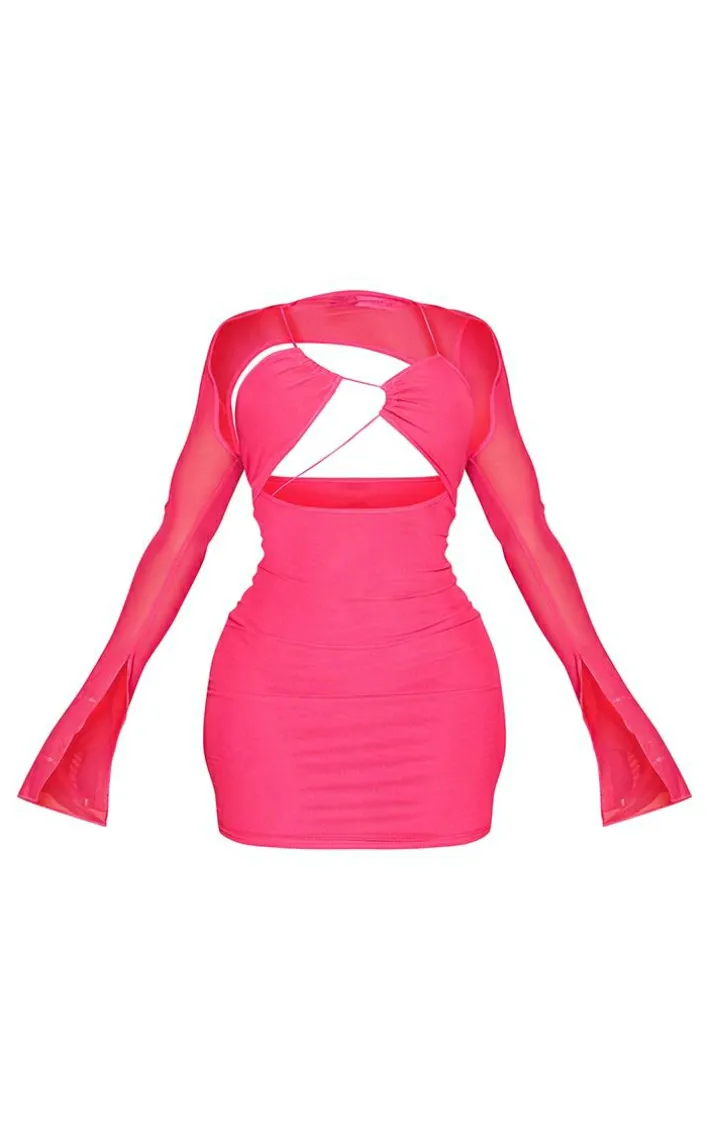 Stand out from the crowd in this statement dress. Featuring a hot pink mesh material with an overlay design, lace up detailing and a figure-flattering fit, we’re obsessed. Just add tie up heels and accessories to elevate the look.