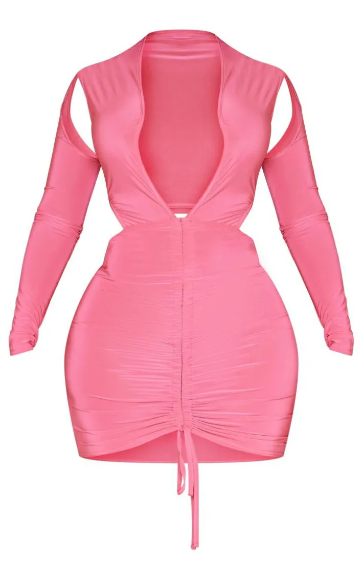 Dare to steal the show this weekend with this shape hot pink slinky long sleeve plunge ruched bodycon dress. Its hot pink slinky material hugs your curves in all the right places whilst its ruched detailing gives you that figure-worshipping fit. This shape bodycon dress also features a plunging neckline which is sure to turn heads for all the right reasons. Simply add heeled mules, a shoulder bag and gold accessories for a look that is unforgettable.