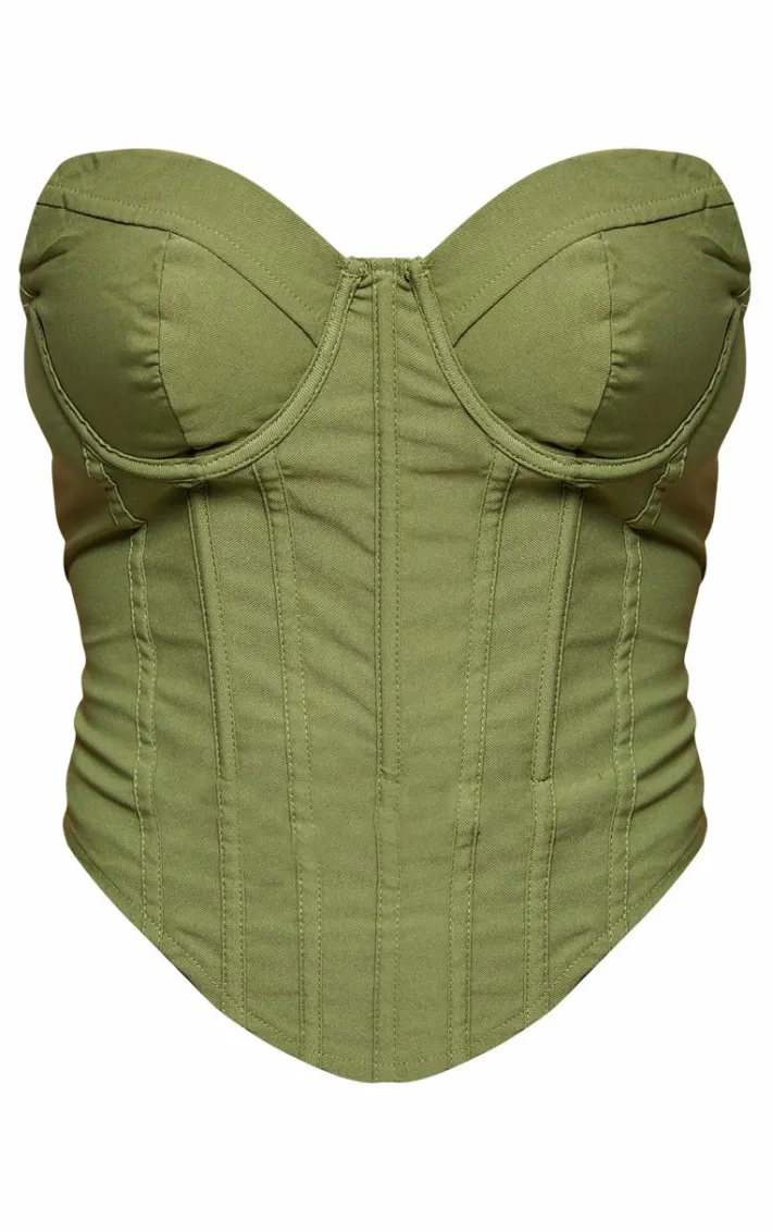 Look all kinds of glam in this shape khaki bandeau corset. Brought to you in a khaki hue material with a bandeau neckline, this corset is everything you need and more. Style with the matching mini skirt, white heels and gold accessories for a figure-hugging fit we can’t get enough of.