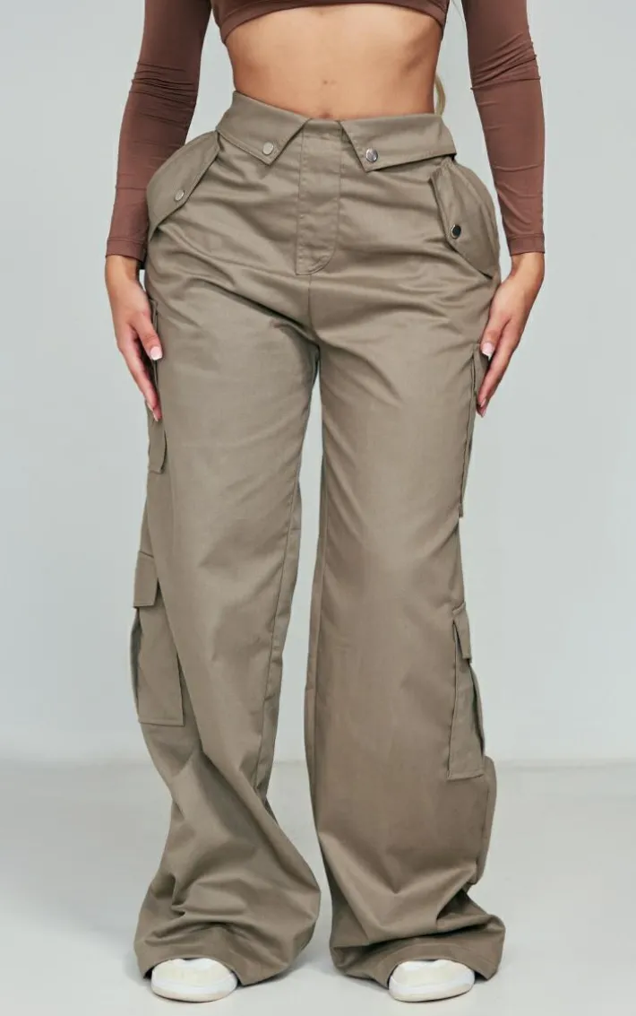 Level up your new season basics with these cargo bottoms. Featuring a khaki material with a fold over waistband and pocket detail. Pair with a crop top and chunky kicks for a look we’re obsessing over.