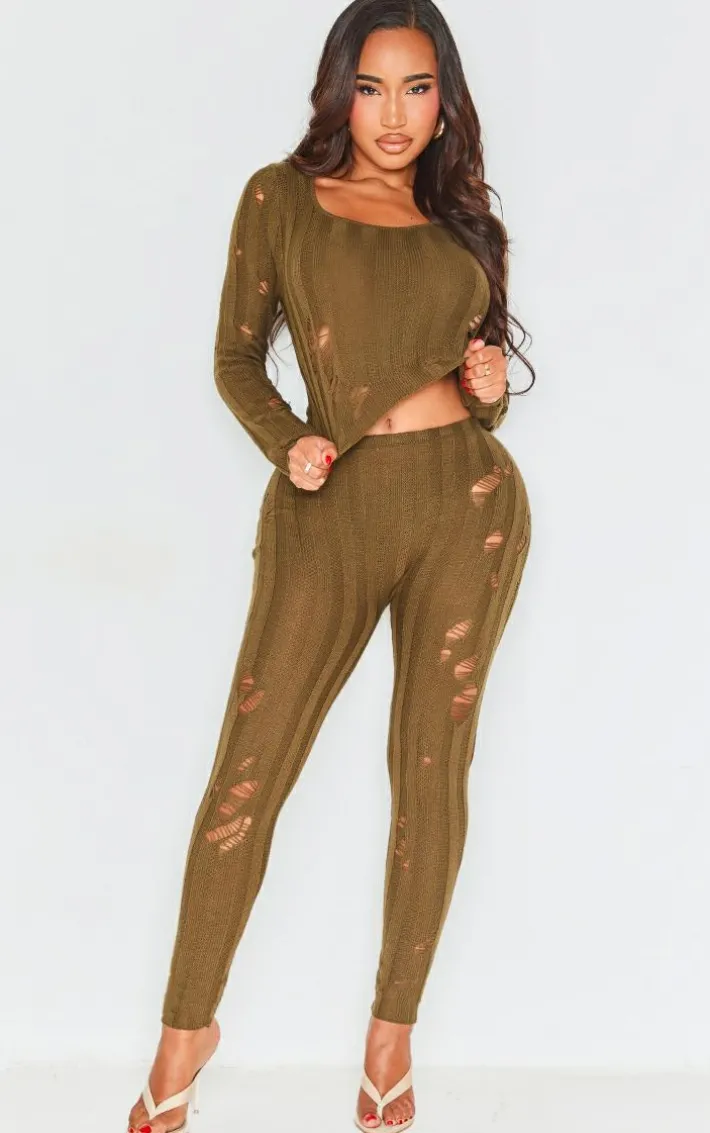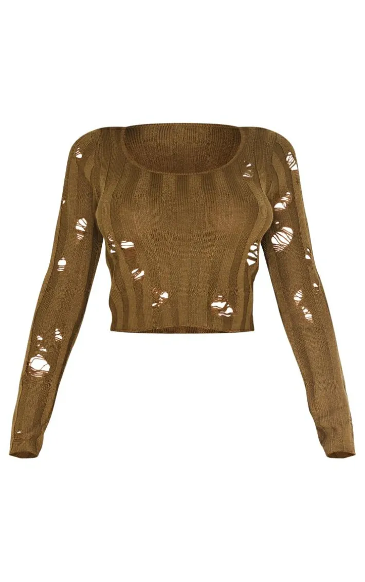 Say hello to your new season staple with this shape khaki distress ribbed knitted long sleeve top. Brought to you in a kahki ribbed knitted material with long sleeves and distressed detailing, what more could you want? This long sleeve top is here to banish any of your what to wear dilemmas. Style with the matching leggings, high heels and accessories for a look that will have you being the topic of everyone’s conversation.