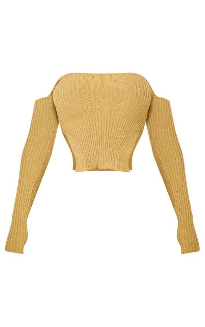Take your weekend wardrobe to a whole new level with this shape khaki knit bardot split side detail top, it’s a definite yes from us. This shape top features a khaki knit material with a side split design and a bardot style, what more could you want? Team with the matching skirt, clear heels and a shoulder bag for a dreamy date night look.