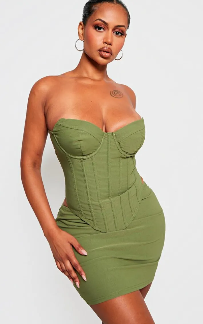 Enter the weekend in style with this shape khaki woven mini skirt. Brought to you in a khaki hue woven material with a flattering mini fit, what more could you want? Pair this mini skirt with the matching top, heels and accessories for a look they won’t be able to take their eyes off.