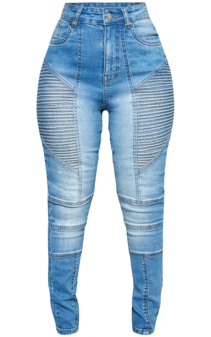 Turn heads for all the right reasons with this shape light blue stretch denim seam biker skinny jeans. Brought to you in a light blue hue denim stretch material with a seam detail and biker design, these skinny jeans are a must have. We’re in love. Style with a denim jacket, heels and gold accessories for a combo we’re crushing on this season.