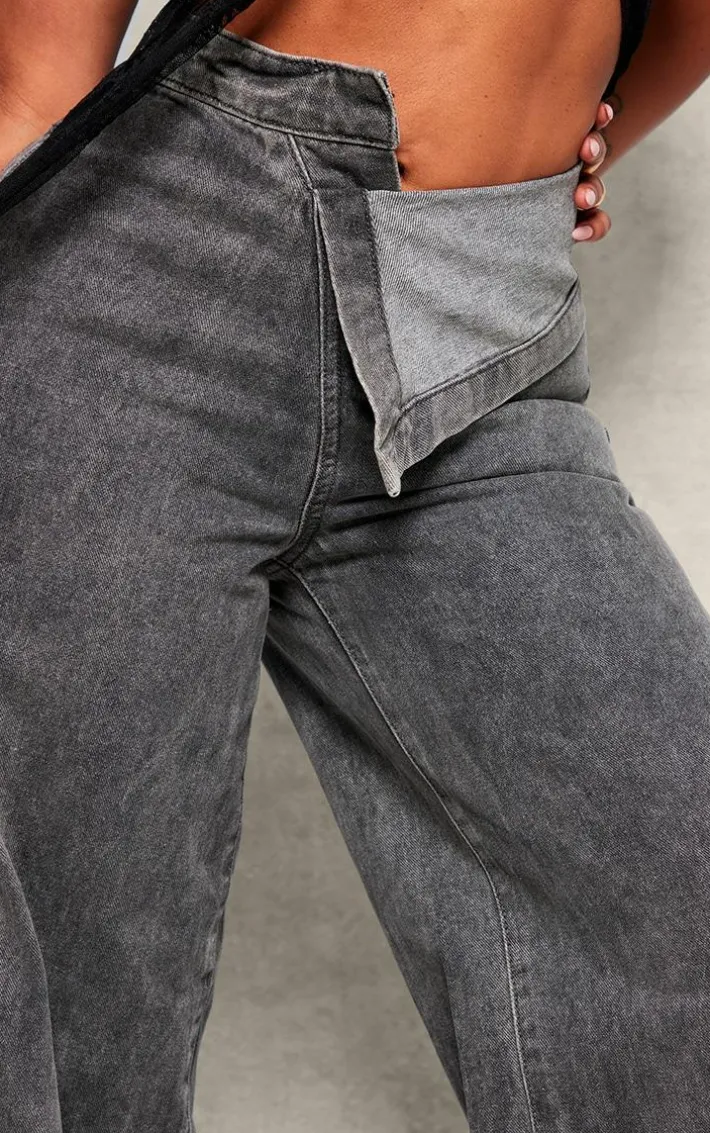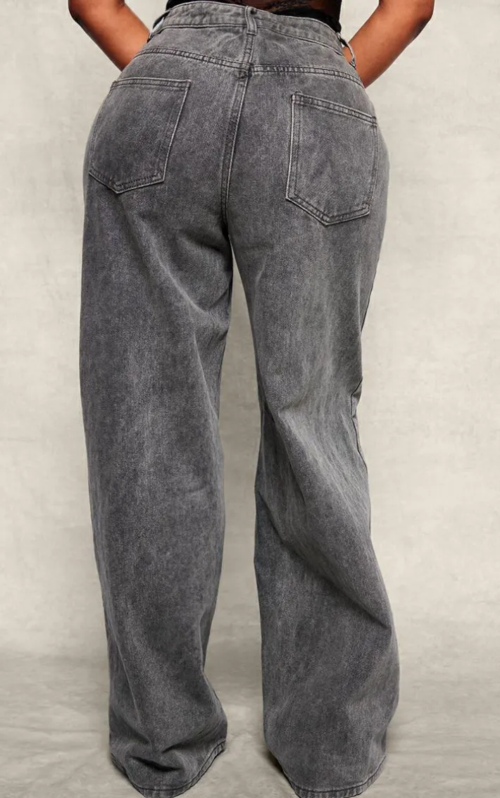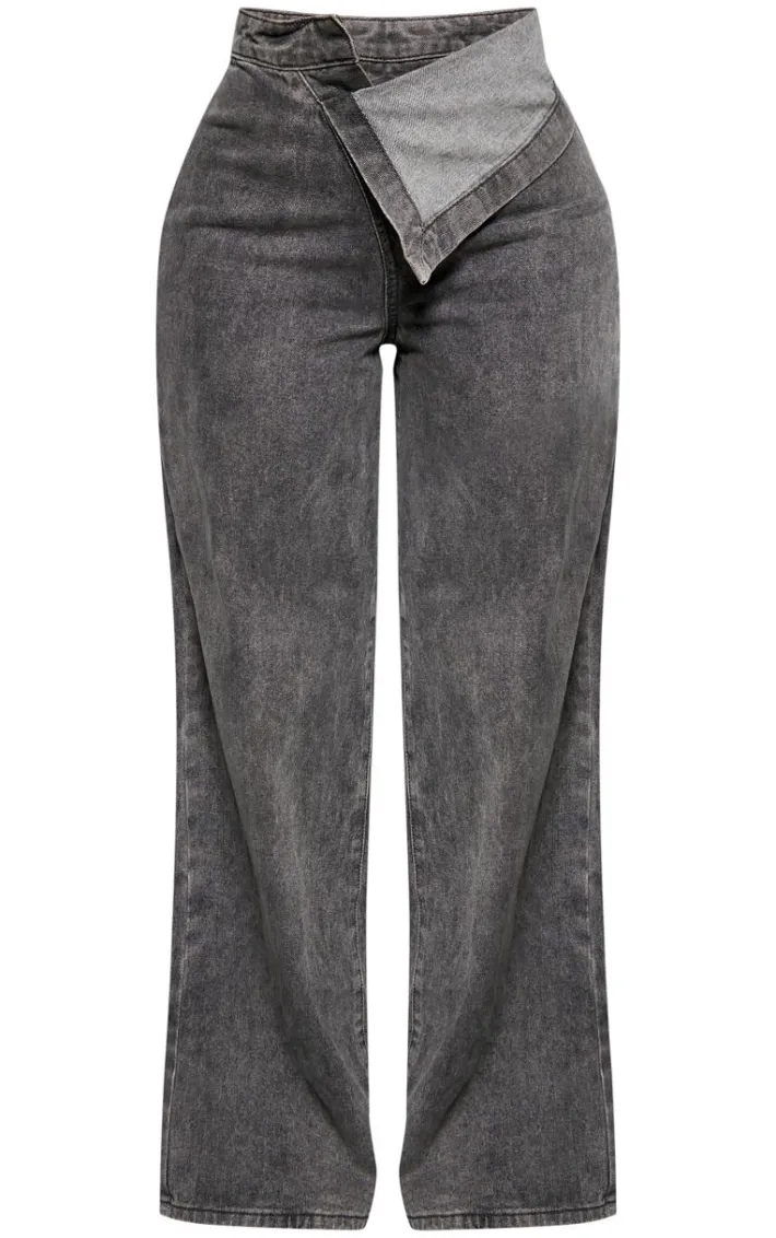 Look all kinds of luxe in these shape light grey foldover waist wide leg jeans. Brought to you in a light grey denim material with a foldover waist detail and wide leg design, these jeans are calling your name. Style with a bandeau top, heels and gold accessories for a glam finish we can’t stop staring at.
