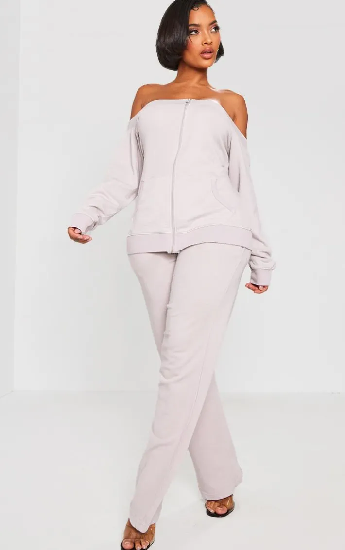 Meet your new season wardrobe essential with this shape light grey washed bardot zip up sweatshirt, it is perfect for those chilled days and beyond. Brought to you in a light grey washed material with a zip up design and a bardot style, this sweatshirt just went straight to the top of your hit list. Pair it with the matching bottoms, chunky sneakers and your fave accessories for a chic, off-duty vibe.