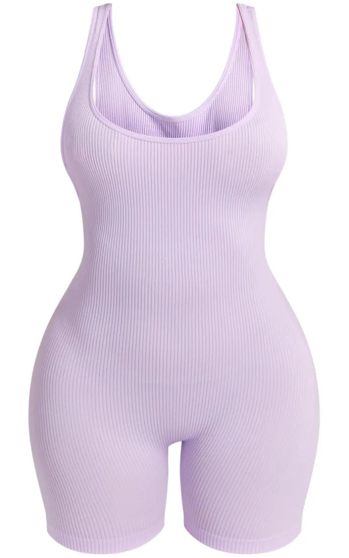 Bring some pastel hues into your weekend wardrobe with this shape lilac snatched ribbed scoop neck unitard. Made from a lilac snatched ribbed material with a scoop neck and a sleeveless design, what more could you ask for? This shape unitard can be dressed up for all your weekend plans and will gain you many compliments with its figure-hugging fit. Team with clear heels and gold accessories ready for a night.