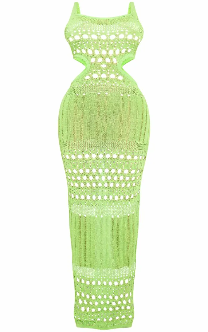 Stand out from the rest with this shape lime knit cut out maxi dress. Brought to you in a lime knit material with a cut out design, you are sure to turn heads no matter what. Its maxi length will have you making a statement wherever you step foot. Team with a pair of your highest heels and accessories of your choice to finish off the look.