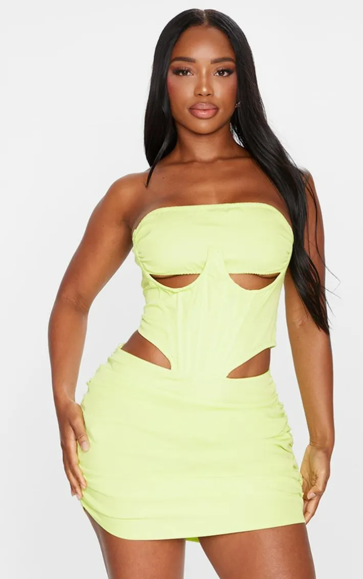 This shape lime woven cut out corset detail bodycon dress is all you need to tap into your fiercely feminine side this season. Brought to you in a lime woven and material with a cut out corset detail that will have heart racing wherever you step foot. Its bodycon fit will have you feeling confident no matter what. Just add a pair of heels and gold accessories to complete the look that everyone will be talking about.