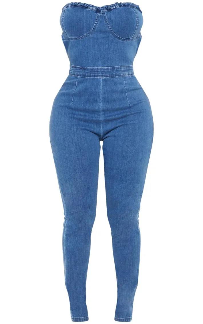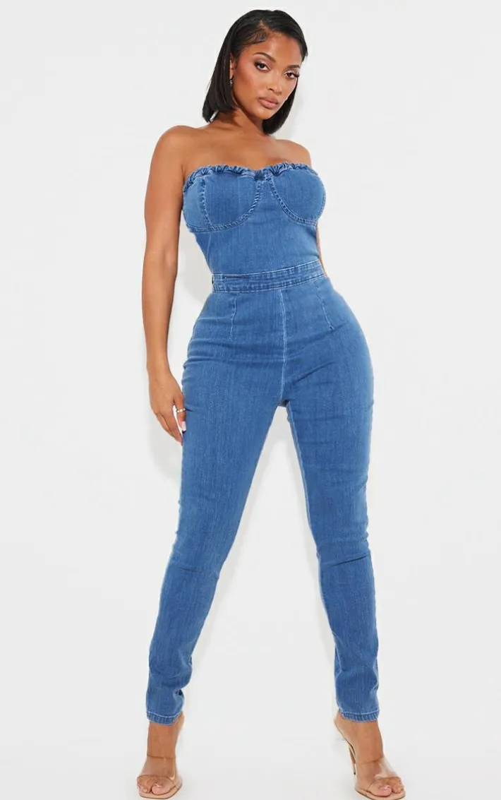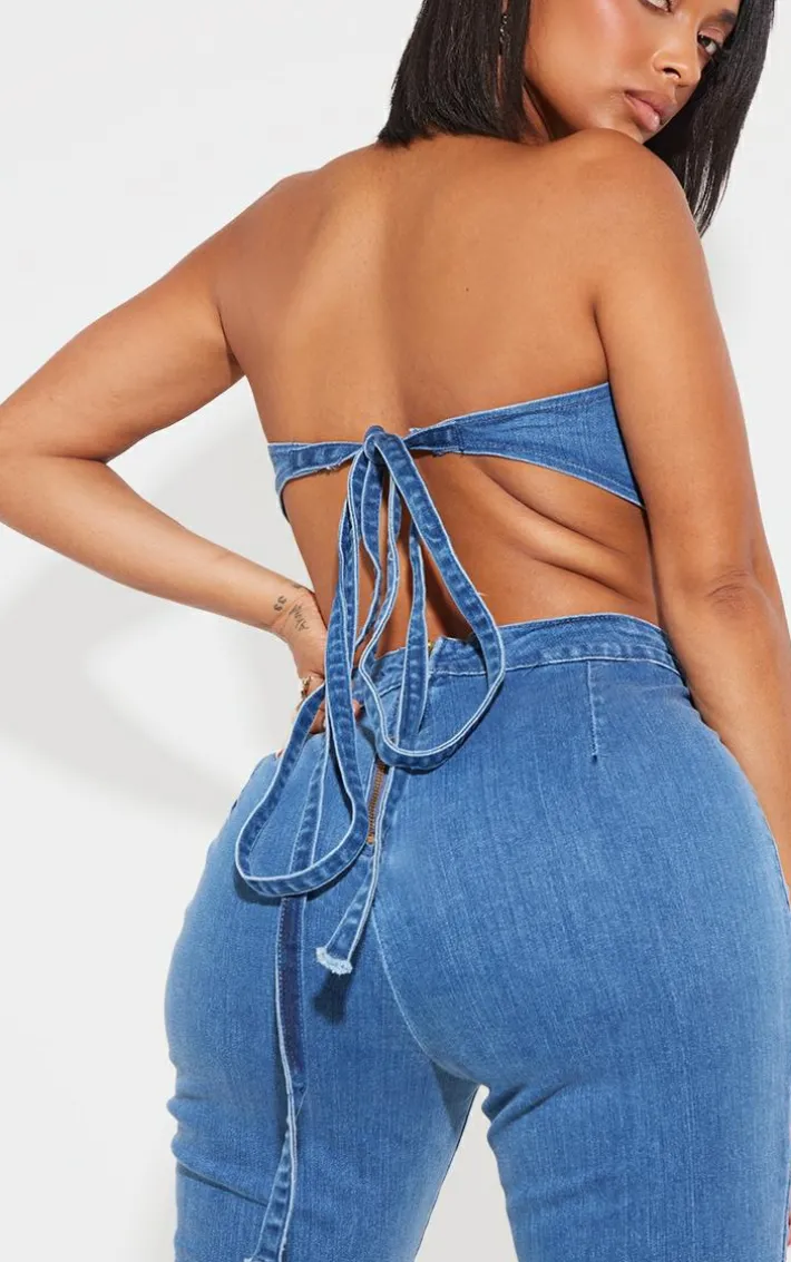 This must-have jumpsuit is sure to give your style some extra edge. Featuring a mid blue washed denim material with cup detailing, a tie back fastening and a flattering fit, we are in love. Simply pair this with high heels and accessories for a vibe that will get you noticed.