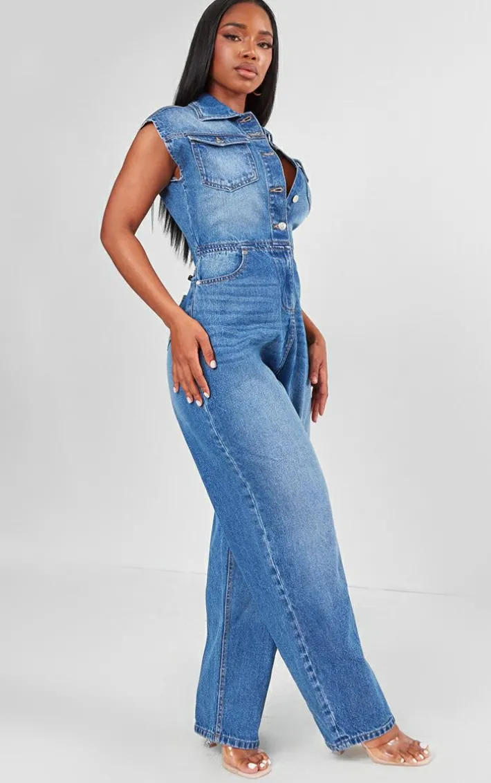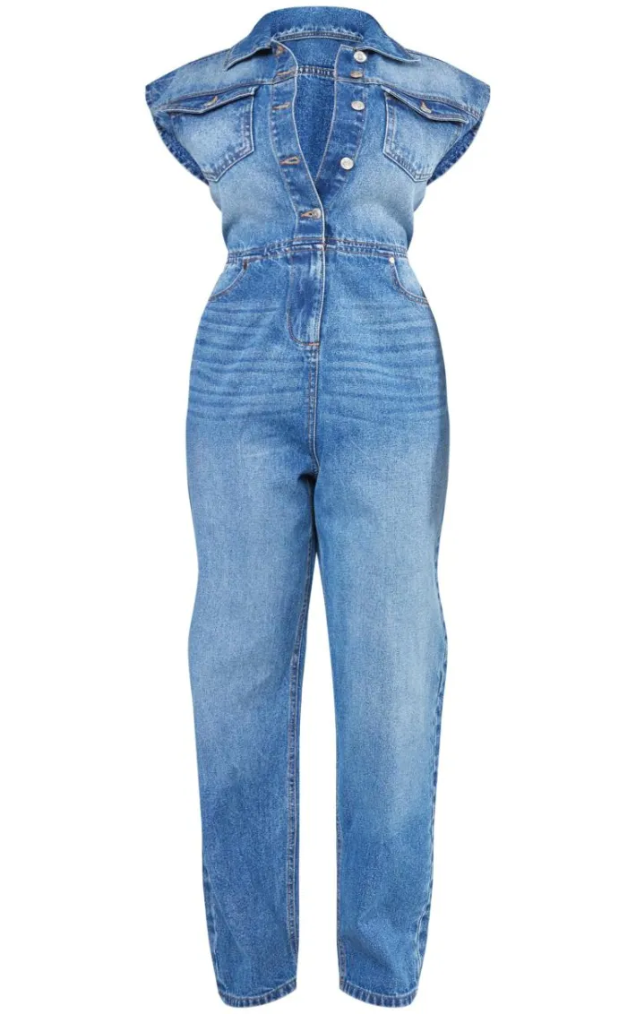 You are guaranteed to earn some serious style points in this shape mid blue wash sleeveless rigid denim jumpsuit. Brought to you in a mid blue wash denim material with a sleeveless design, button detailing and a flattering fit, how can you resist? Style this denim jumpsuit with heels and gold hoops for a look that is sure to make heads turn this weekend.