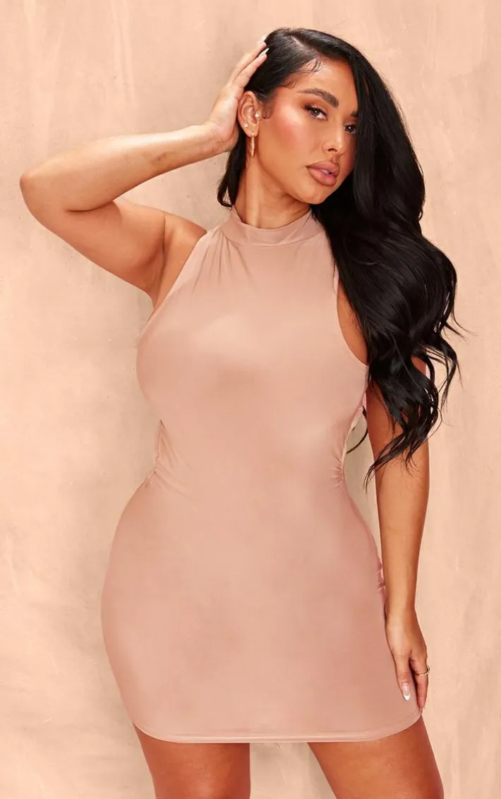 Turn heads for all the right reasons with this this shape mocha slinky cut out back bodycon dress. Brought to you in a mocha hue slinky material with a cut out back and bodycon fit, this dress is a must-have. Style with leopard print heels, your fave accessories and sleek shades for a luxe look. It’s a yes from us.