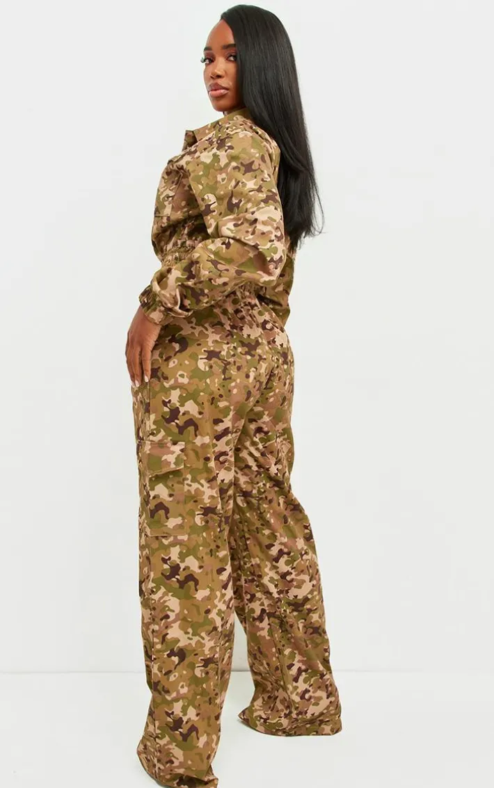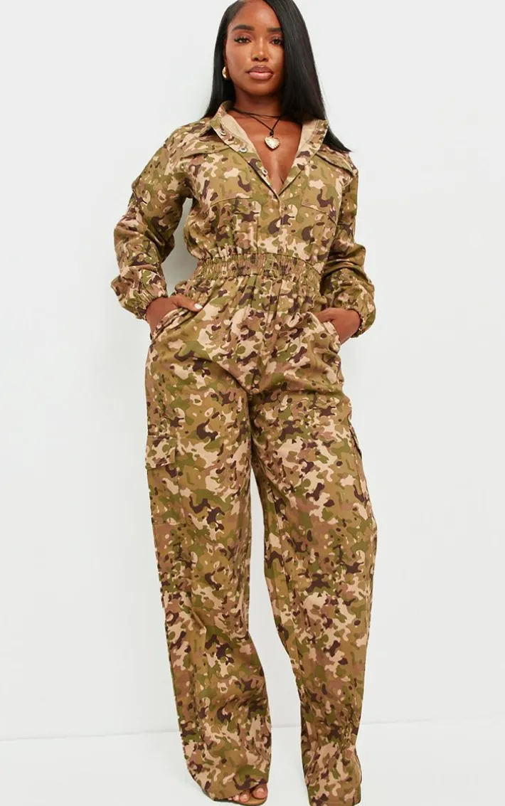 Add some edge to your outfit of the day with this shape multi camo printed elasticated waist jumpsuit. Brought to you in an unreal multi camo printed design, with an elasticated waist to show off your figure and a button up V neck line, we just can’t get enough. Style with your fave heels, accessories and a shoulder bag for a look that will turn heads wherever you go.