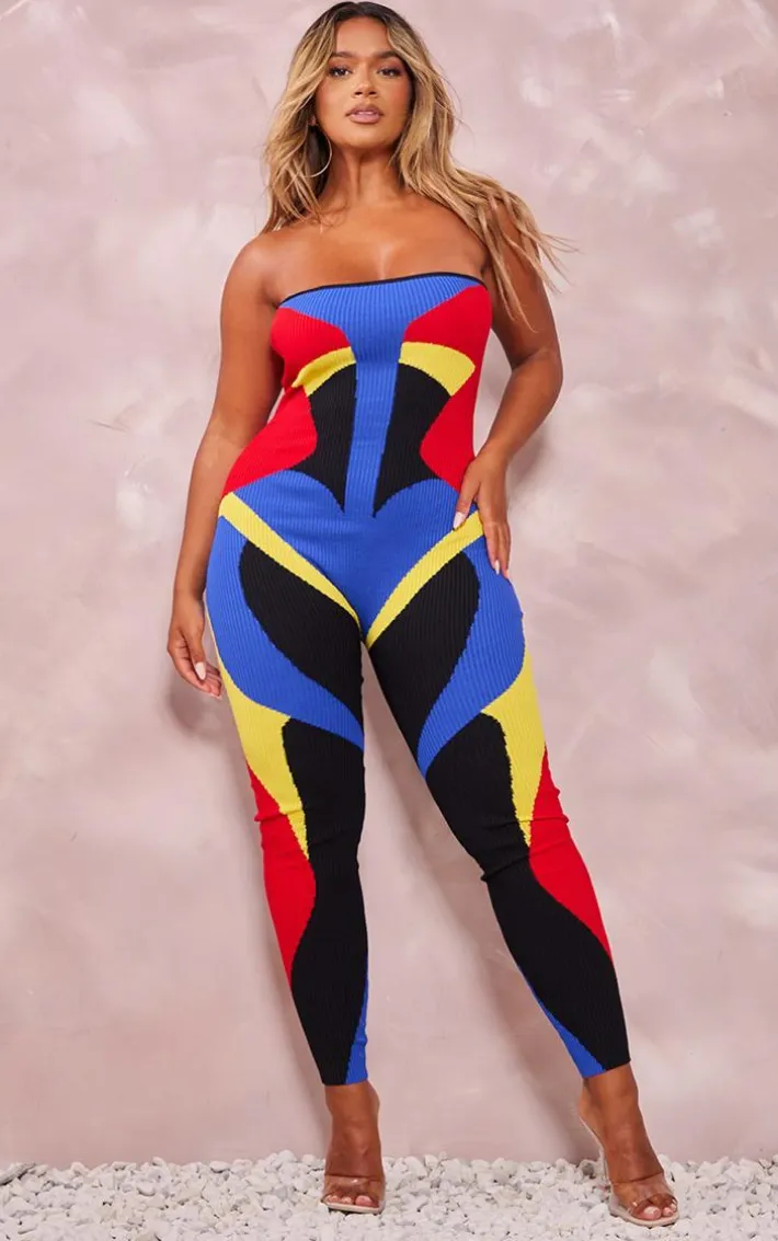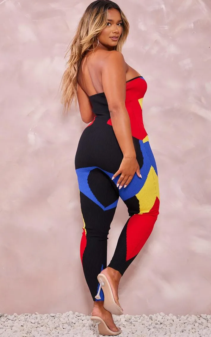 Steal all the stares this weekend with this shape multi colourblock bandeau jumpsuit. Made from a multi colourblock ribbed material with a bandeau neckline and a figure-flattering fit, what more could you ask for? No matter what your plans are for the weekend, this shape jumpsuit is sure to help you stand out from the crowd. Simply add heeled boots and gold accessories for a look that will get everyone talking for all the right reasons.