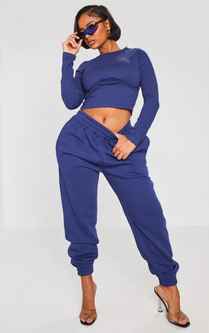 Show off your shape in all the right places with these shape navy high waisted cuffed sweatpants. Brought to you in a navy material with a high waisted fit, what’s not to love ? Its cuffed detail adds all the edge to your outfit of the day. Team with the matching crop top and a pair of clear heels to take any look from day to night instantly.