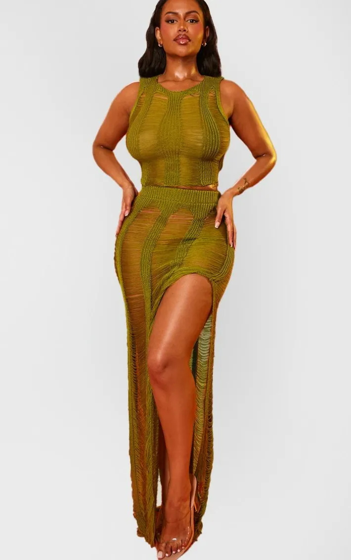 When your weekend look calls for a little extra drama, we’ve got you covered with this shape olive knit ladder maxi skirt. Made from an olive hue knit material with ladder detailing and a maxi fit, we are obsessed. Pair this maxi skirt with the matching top, heels and gold accessories for a look that will make you stand out from the rest.