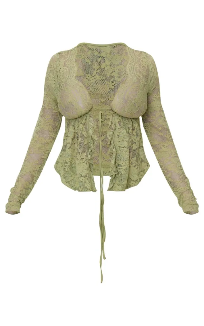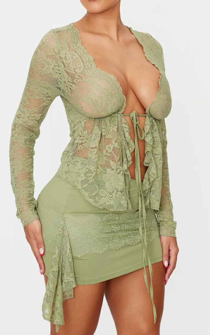 Say hello to your new season staple with this shape olive lace tie split front long sleeve top. Brought to you in an olive material with a lace tie and a split front detail, this long sleeve top is sure to turn heads for all the right reasons. Style effortlessly with the matching skirt and heels for a fool proof finish like no other.