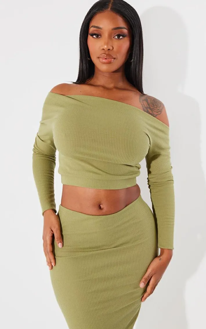 Channel all the luxe vibes into your new season wardrobe with this shape olive rib one shoulder crop top, we’re seriously in love. Made using an olive rib material with a one-shoulder design and a figure-worshipping fit, you won’t be able to resist this dreamy piece. Team this top with some statement accessories and the matching maxi skirt for a bold finish.