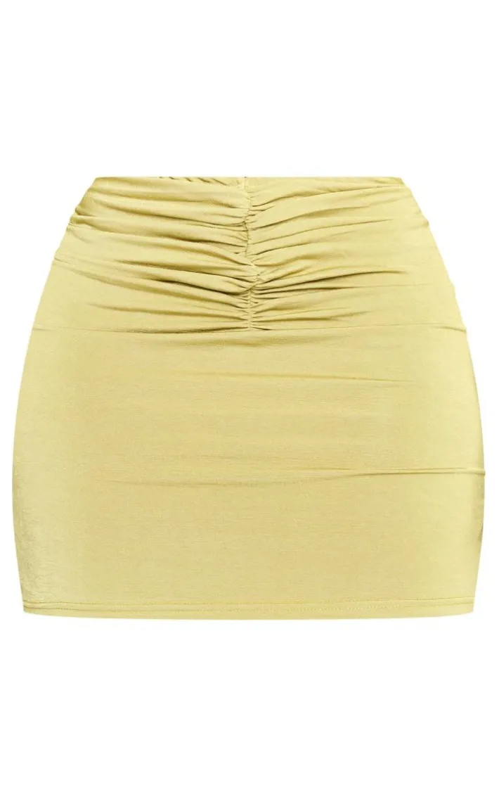 Nail the dress code this weekend with this shape olive slinky acetate ruched front mini skirt. Brought to you in an olive slinky acetate material that hugs your curves in all the right places and ruched front detailing for that chic touch, how could you say no? Whatever your plans are this weekend, this shape mini skirt is sure to impress and gain all the attention. Team with the matching top, strappy heels and a mini bag for a weekend-worthy finish.