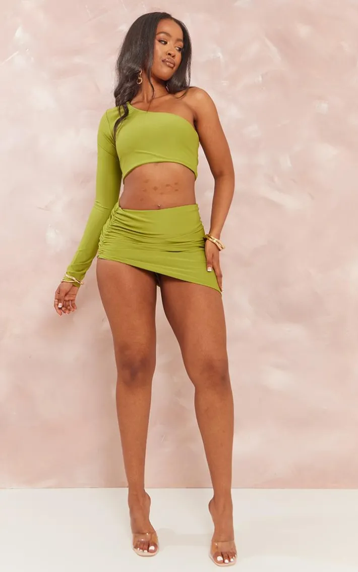 When your weekend look calls for some dreamy hues, we’ve got you covered with his shape olive slinky one shoulder crop top. Brought to you in an olive hue slinky material with a one shoulder design and a cropped fit, how can you resist? We are loving this shape crop op styled with the matching mini skirt, heels and statement gold accessories for a look that is sure to make your stand out from the rest.