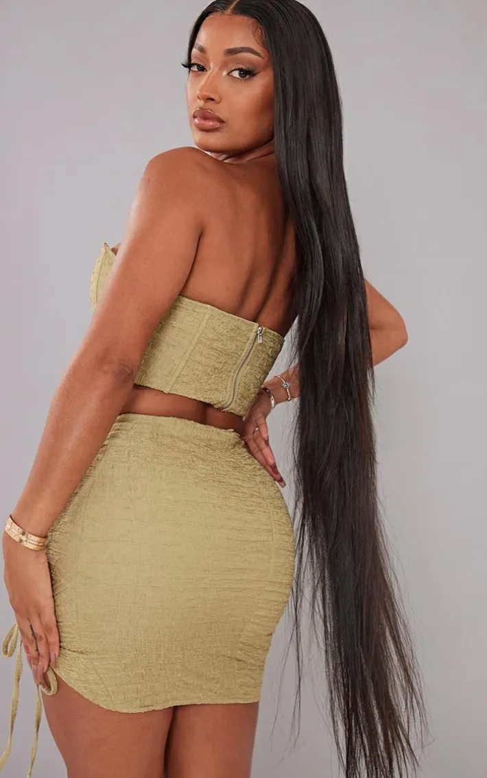 Add some drama into your weekend wardrobe with this corset. Featuring a olive textured material with a plunge design, what’s not to love? Team with your existing wardrobe pieces and statement accessories to complete the look.
