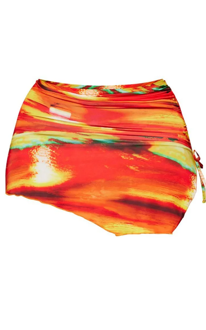 Add some drama into your weekend wardrobe with this shape orange abstract printed slinky ruched side mini skirt. Brought to you in an orange slinky material with an abstract printed design, we are seriously obsessed. With its ruched side and mini length, you’re sure to have all eyes on you. To complete the look style with some mule heels and gold hoops for a date night look.