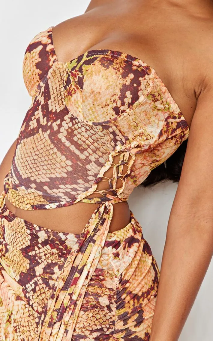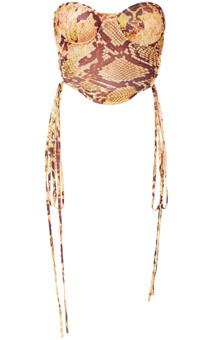 Dare to stand out from the crowd in this dreamy shape orange animal printed mesh lace up detail bandeau boning corset. With an orange animal printmaterial, a lace-up detail and a bandeau design, you’re sure to be earning all the compliments in this corset. Just add the matching bottoms, high heels and accessories for a look that is totally on trend.