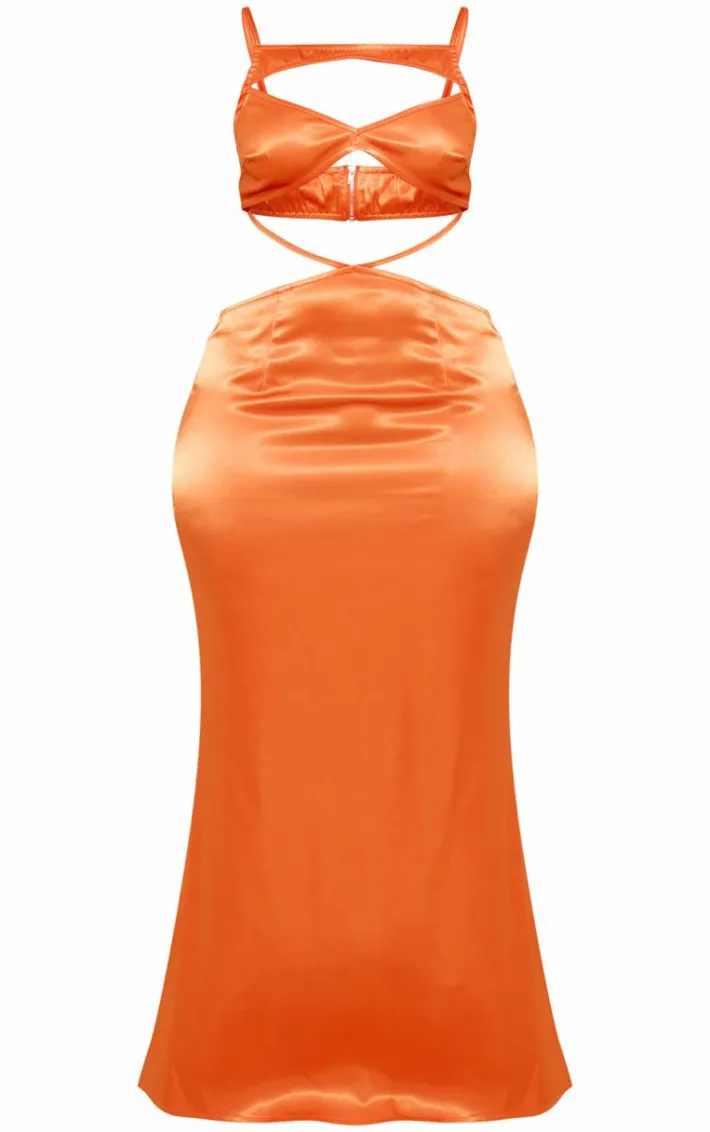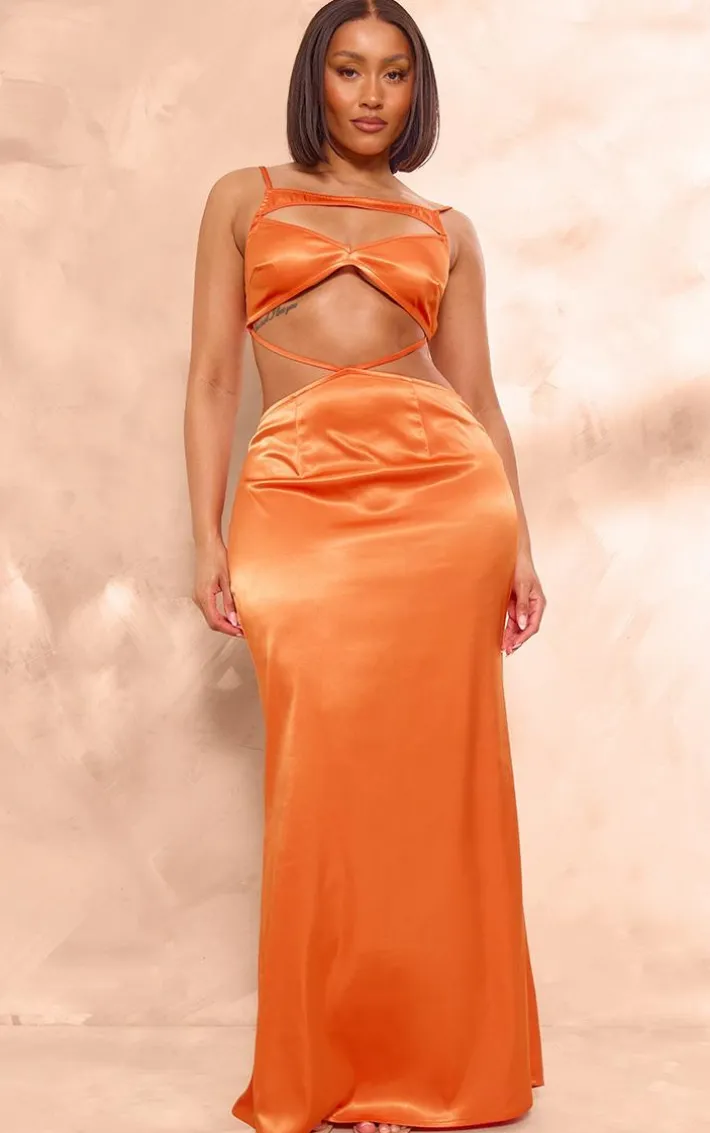 Dare to go bold this season with this shape orange satin bra detail cut out maxi dress, you’re sure to turn heads. This shape dress features an orange satin material with a bra detail and a cut out design, we’re obsessed. Just add your highest heels and simple accessories for a look no one will forget.