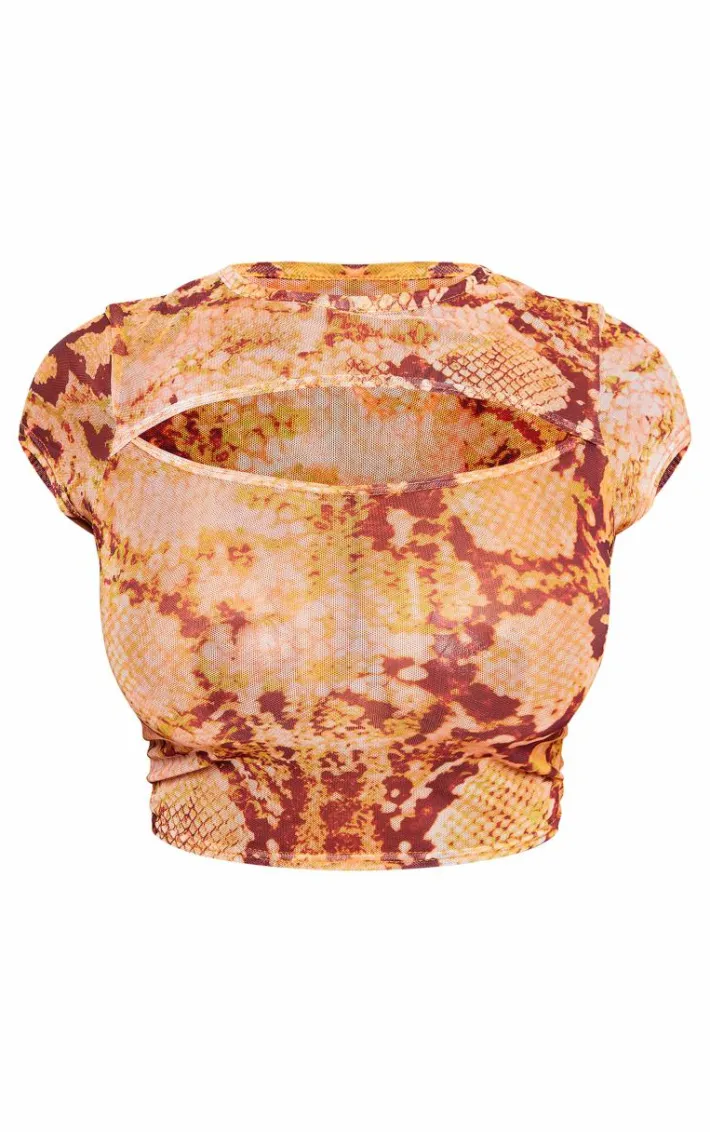Inject some fierce animal prints into your weekend wardrobe with this shape orange snake print cut out front crop top. Brought to you in an orange snake print material with a cut out front design and a cropped fit, we are obsessed. Pair this crop top with the matching leggings, heels and gold accessories for a look that is sure to make heads turn wherever you go.