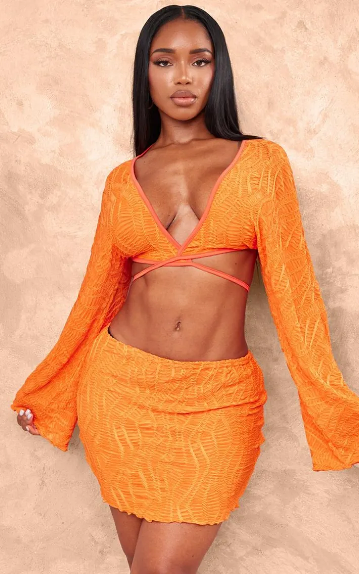 Make a statement in this shape orange textured tie front long sleeve top. Brought to you in an orange hue textured material with long sleeves and tie front detailing, what more could you want? Style this shape top with the matching skirt, heels and gold accessories for a weekend-worthy look that won’t go unnoticed.