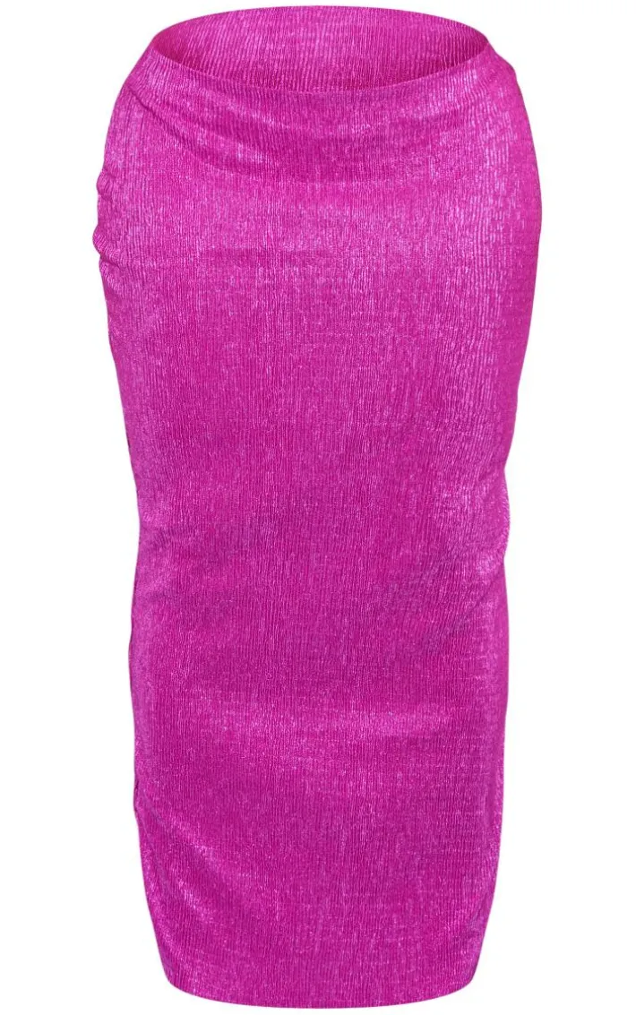 Dare to stand out from the crowd this weekend with this shape pink glitter plisse low rise maxi skirt. Its pink glitter plisse material injects a luxe touch into your look and its low rise waist shows off your unreal figure. This shape maxi skirt is perfect for any dress code and is sure to earn you the best-dressed every time. Team with the matching top, gold heels, and statement accessories for a look that will steal all the stares.