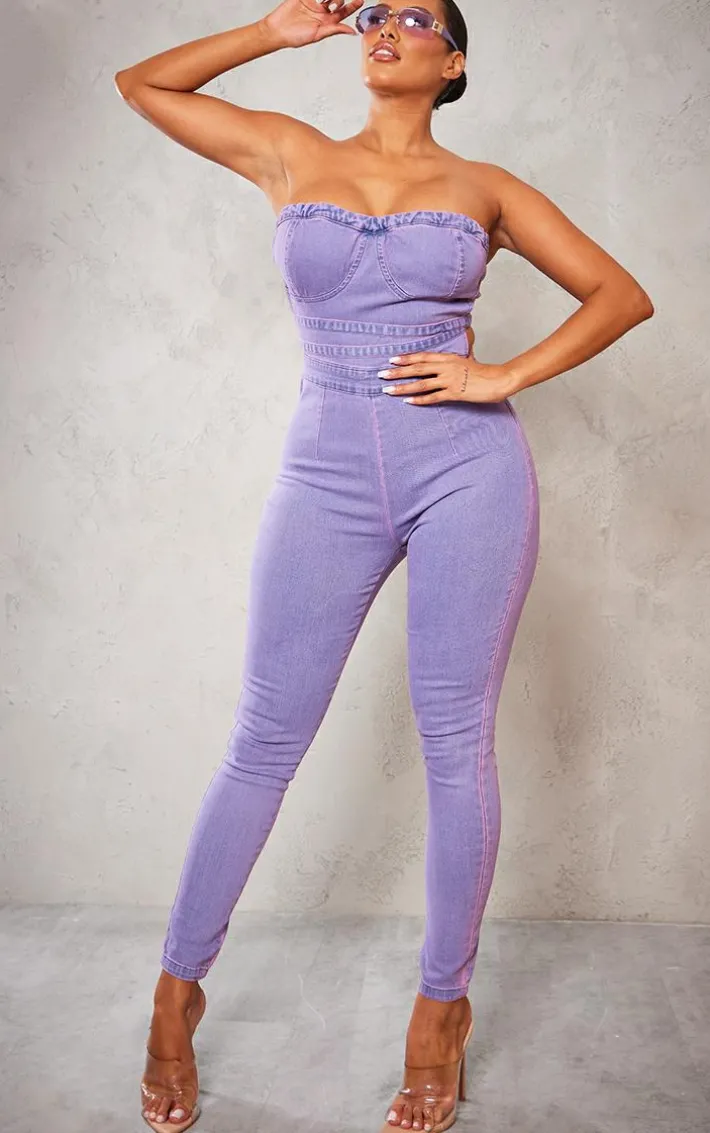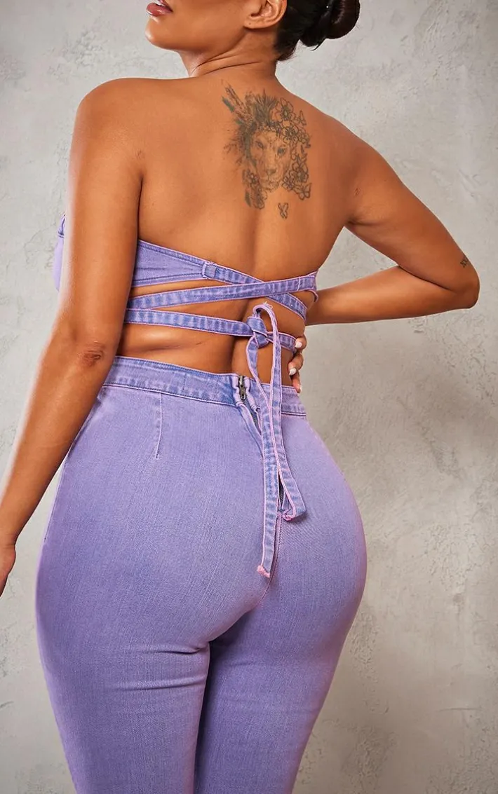 Channel all the fiercely feminine vibes into your new season wardrobe with this shape purple acid wash cup detail tie back denim jumpsuit, you’ll be stealing all the stares. With a purple acid wash denim material, a tie back design and a figure-worshipping fit, this shape jumpsuit just earned you all the likes. Pair it with clear slip-on heels and statement accessories for a bold look we’re loving.
