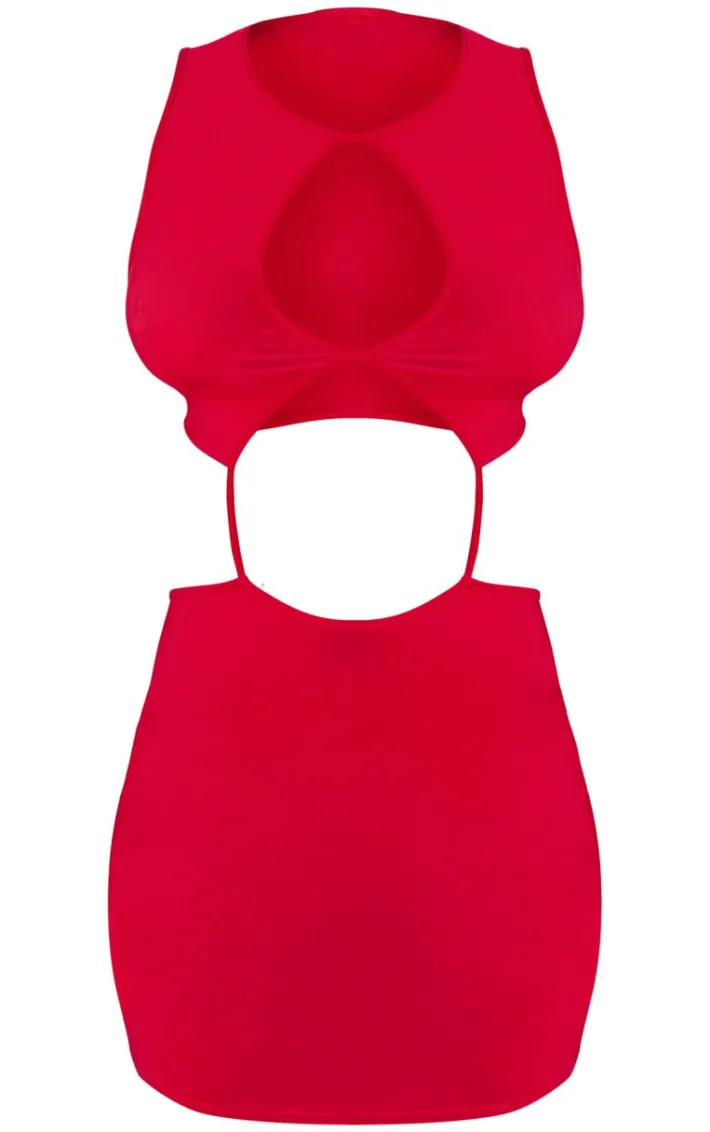 Get ready to have all eyes on you with this shape red slinky cut out backless bodycon dress. Brought to you in a red slinky material with a cut out backless design, whatÂ’s not to love? With its bodycon fit, youÂ’ll sure to earn all the likes with this dreamy piece. Finish off the look by pairing this with your go-to heels and accessories. ItÂ’s a yes from us.