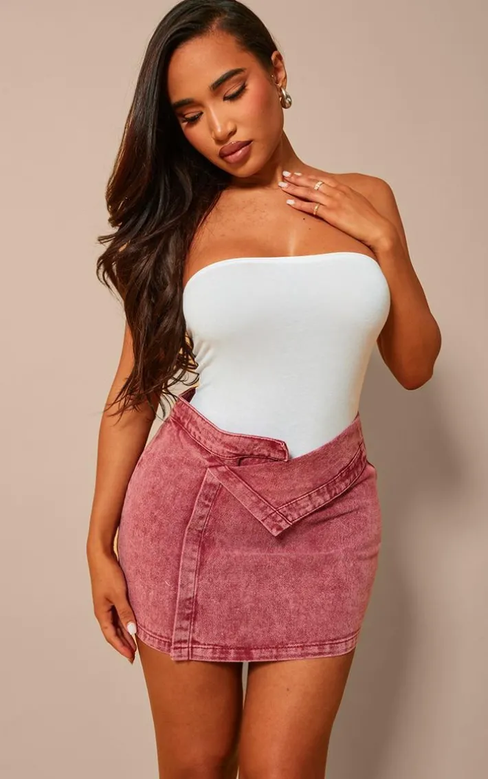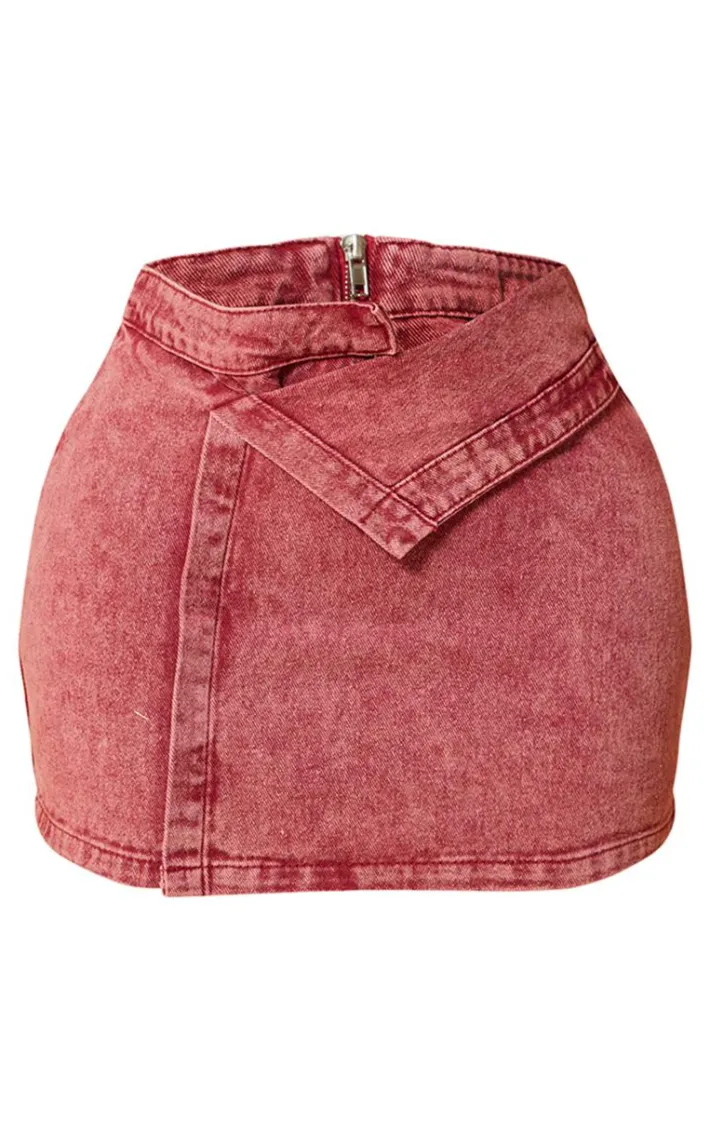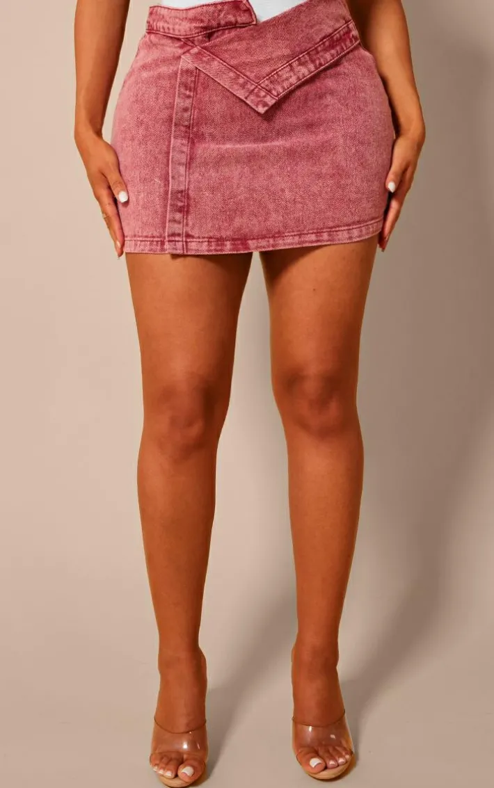 The weekend is calling and this shape red washed denim foldover waist mini skirt is just what you need to impress. With a red washed denim material, a foldover waist detail and a figure-flattering fit, how could you not be in love? Whatever your plans are this weekend, this shape mini dress is sure to steal all the stares. Team with a cowl neck top, clear heels, and a mini bag for a flawless finish.