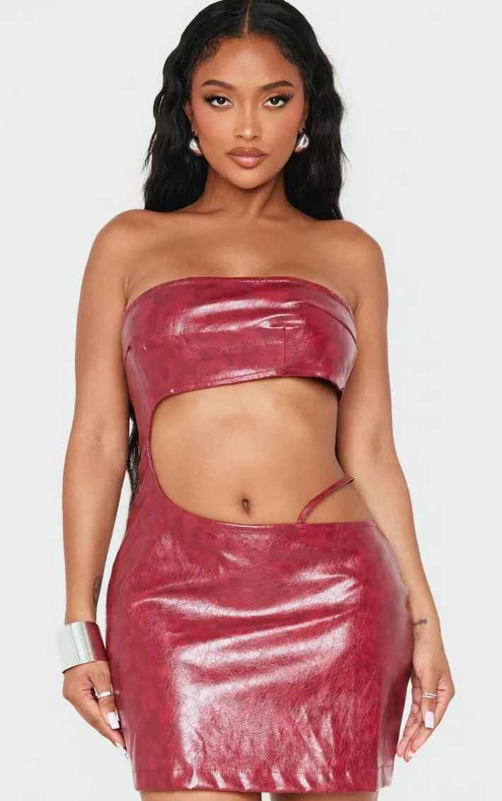 Introducing this shape red washed faux leather cut out dress, your new style staple. Brought to you in a red washed faux leather material with a cut out detail, what’s not to love? Team this dress with a pair of heels and gold accessories to make a statement this season.
