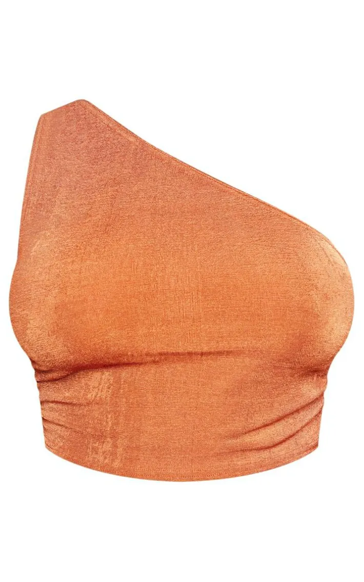 Take the stress out of weekend styling with this shape rust slinky acetate one shoulder crop top. Made from a rust hue slinky acetate material with a one shoulder design and a cropped fit, what more could you want? We are loving this crop top styled with the matching skirt, strappy heels and a mini bag for a weekend-worthy look that is sure to have heads turning wherever you go.