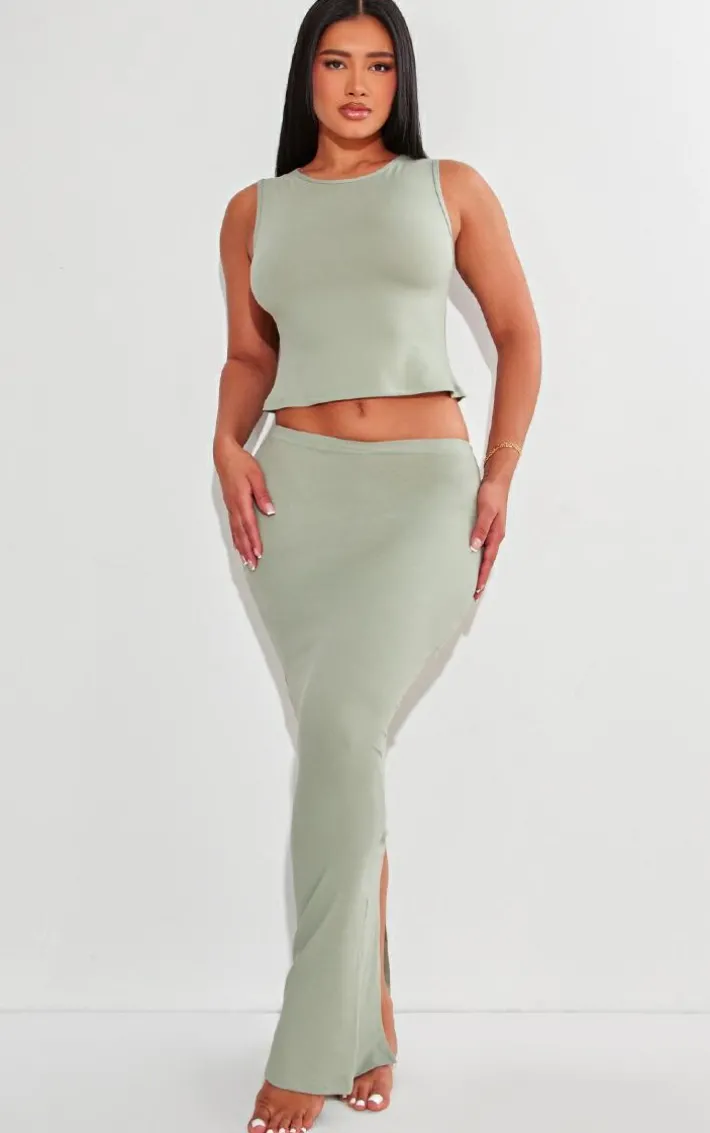 Bring all the dreamy hues to your new season wardrobe with this shape sage green sculpted longline racer top. Made from a sage green hue sculpted material with a racer neck design and a longline fit, what’s not to love? Pair this racer top with thematching skirt and your fave accessories for a look that is sure to make heads turn.