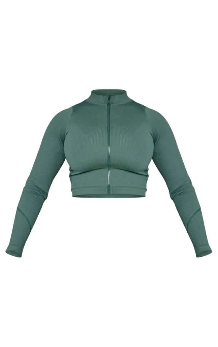 Amp up your gym fit with this long sleeve top. Featuring a sea green hue material with contrast stitching and a zip-up fastening, we’re seriously obsessed. Finish off this sporty vibe with matching leggings and chunky kicks.