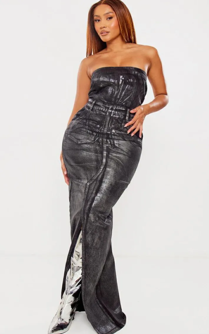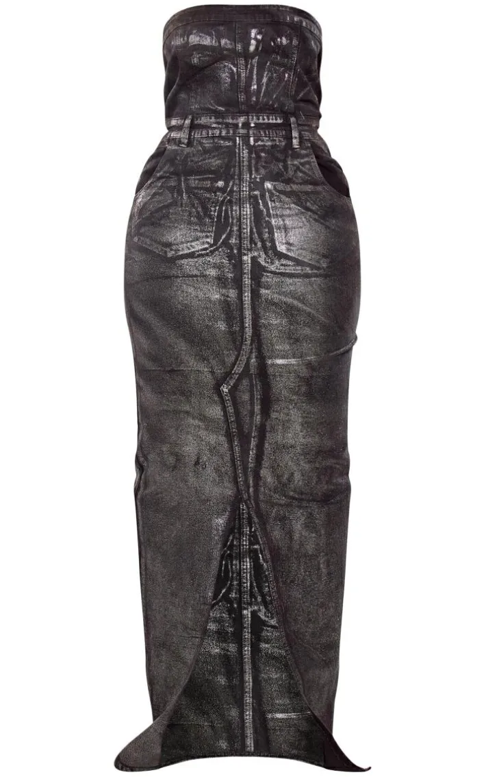 Get ready to make a serious style statement in this shape silver metallic denim bandeau maxi dress. Brought to you in a silver hue denim material with metallic detailing that we just can’t get enough of right now, a bandeau neckline and a maxi length, how can you not be obsessed? Style this shape maxi dress with knee length heeled boots and some luxe accessories for a look that won’t go unnoticed.