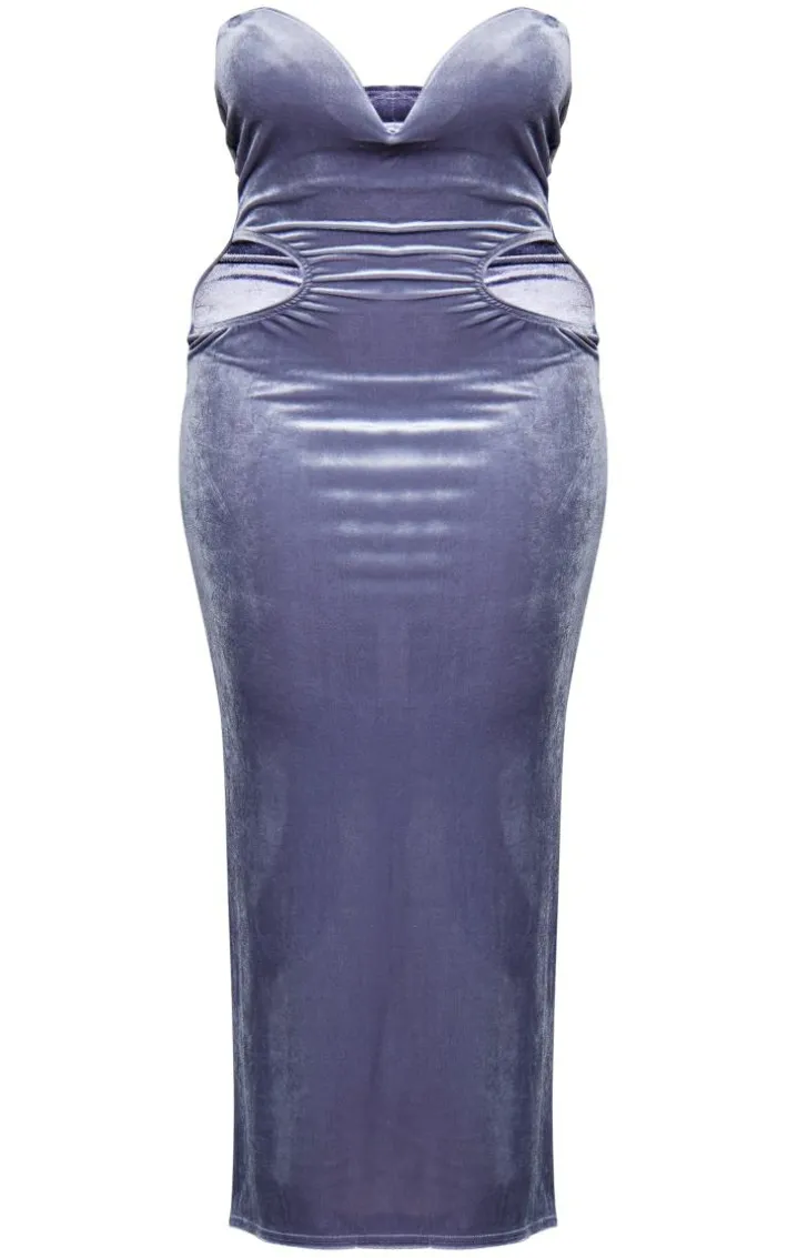 Got a special occasion pencilled into your diary? Then this shape silver velvet plunge front cut out maxi dress will tick all the boxes. With a silver hue velvet material with a plunge front and a cut out design, this shape maxi dress will have you feeling your best. Style it with clear heels and your fave accessories for a flawless finish.