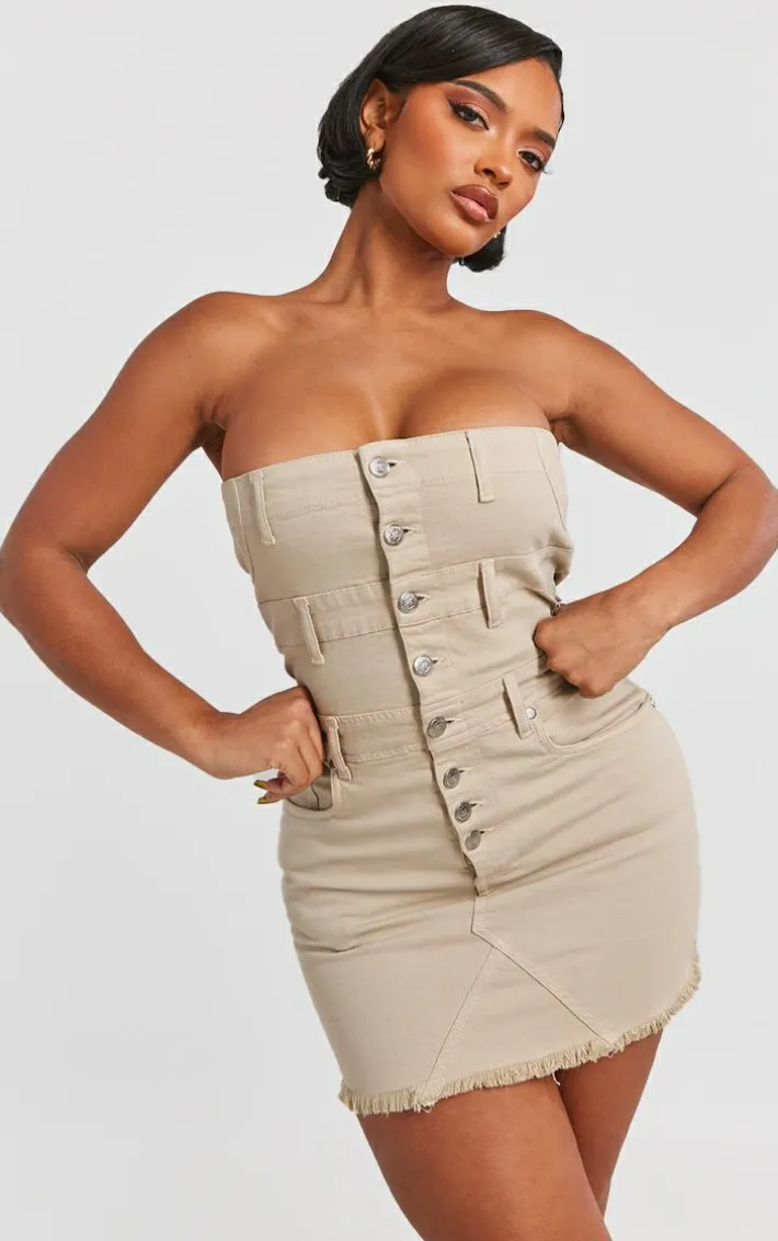Say hello to your new season staple with this shape stone denim button front bandeau dress. Brought to you in a stone denim material with a button front fastening and a bandeau fit, what more could you want? This shape dress will be showing off your shape in all the right places. What more could you want ? Style with some heeled boots, gold hoops and a statement bag for a look that will have you being the topic of everyone’s conversation.