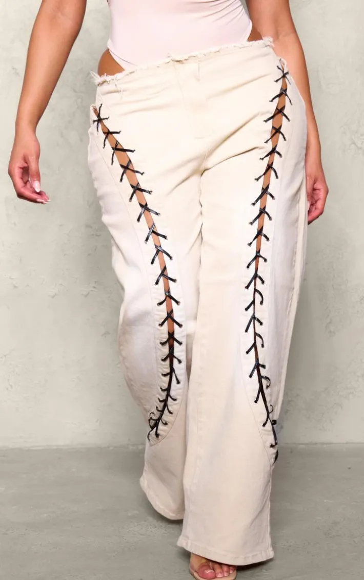 When the dress code calls for glam, we’ve got you covered with these shape stone denim lace up front raw waist wide leg jeans. Brought to you in a stone denim material with a lace-up front, a raw waist and a wide leg fit, you really can’t go wrong. Style these stone jeans with heels for a look that is sure to turn heads.