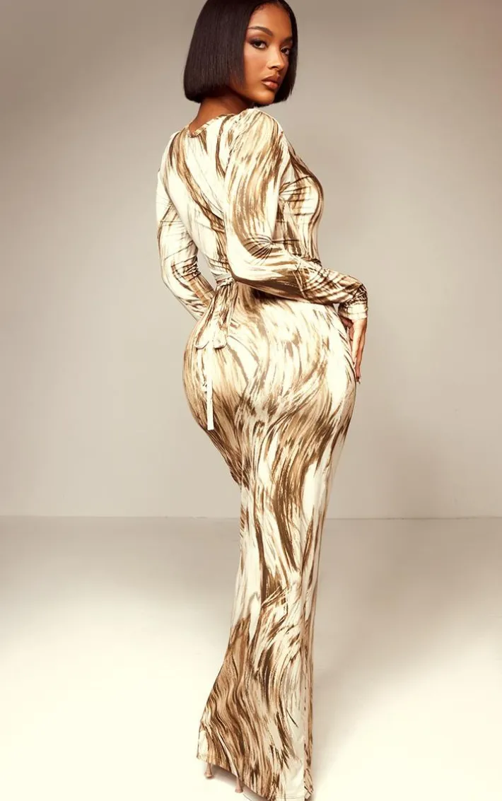 Show off your unreal figure in this shape stone printed slinky long sleeve midaxi dress and be sure to steal all the stares. With a stone printed slinky material, a scoop neckline, and long sleeves, how could you say no? Whether you’re meeting upor have a date night in the diary, this shape midaxi dress ticks all the boxes. Team with clear heels, gold accessories and a clutch bag for a seriously luxe finish.
