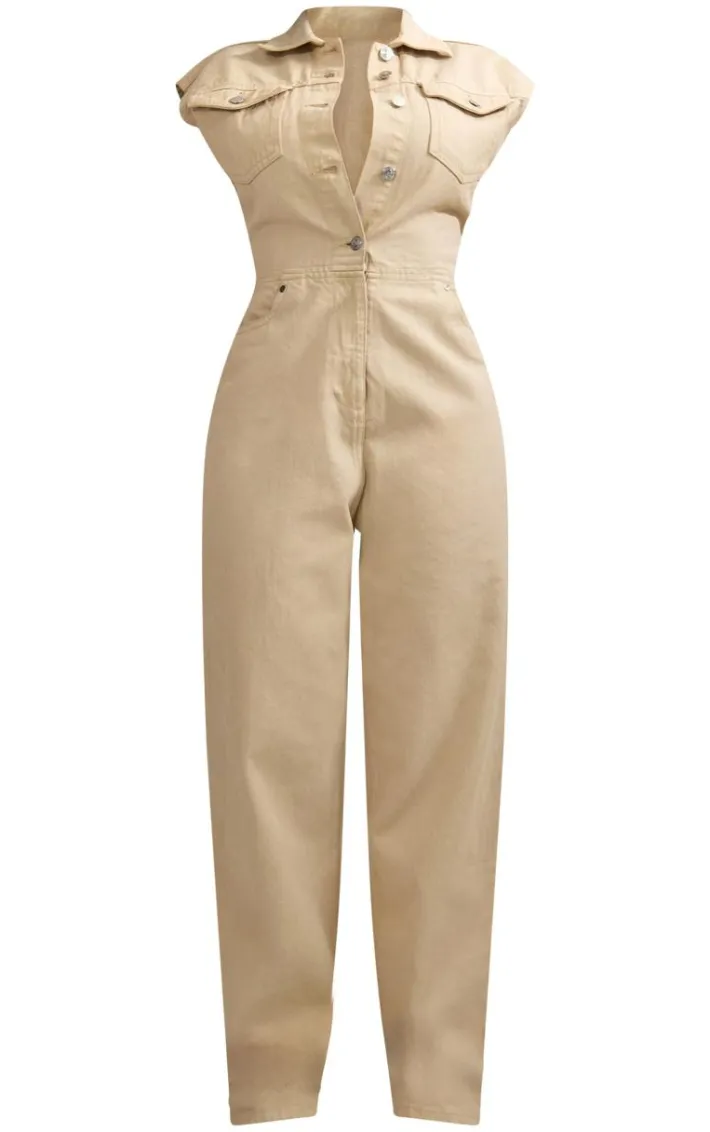 Be on trend this season with this shape stone sleeveless rigid denim jumpsuit. Brought to you in a stone denim material with a sleeveless design and button up detail, you will bring all the edge to your outfit of the day. This jumpsuit is perfect for those on the go days. Team with high heels and accessories to be the center of attention wherever you step foot this season.