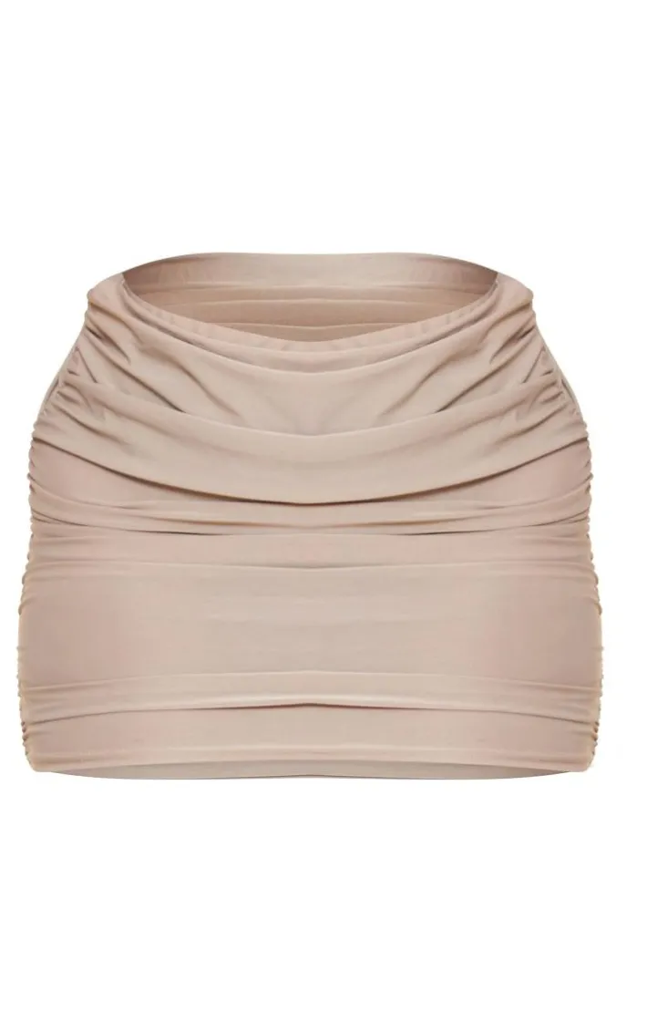 The weekend is calling and you need to answer with this shape stone slinky ruched side mini skirt. It features a stone slinky material with ruched side detailing and a figure-hugging fit, how could you resist? This mini skirt is a wardrobe staple and is just what is missing from it. Style effortlessly with the matching top, clear heels, and gold hoops for a dreamy finish.