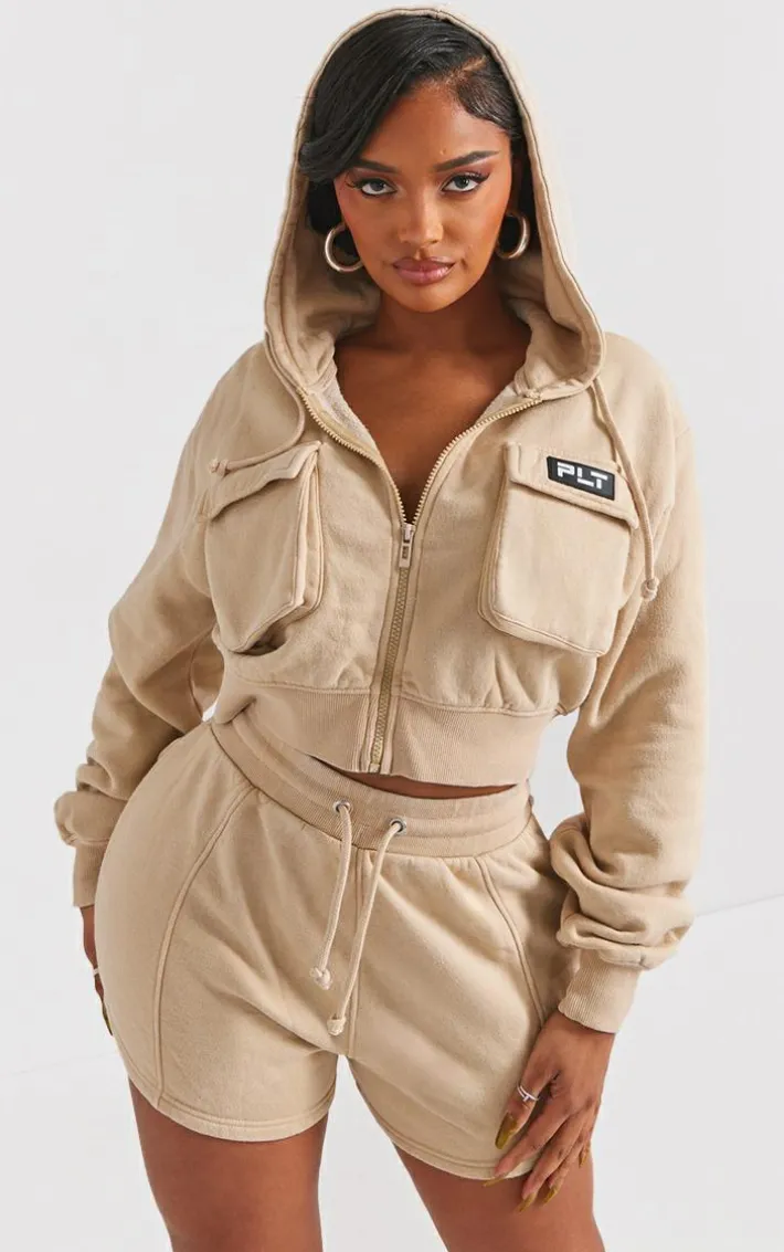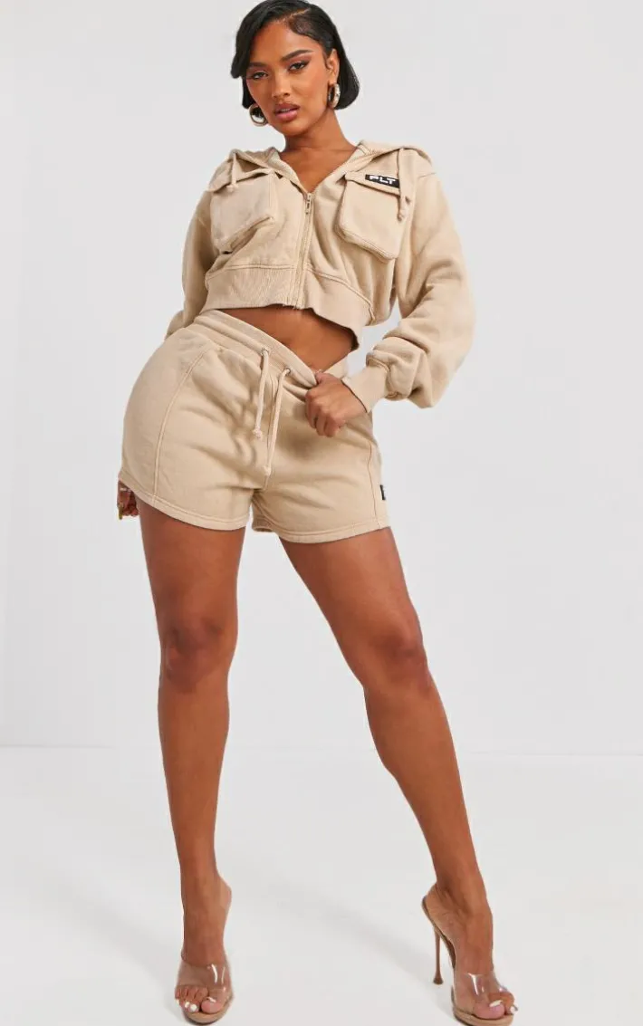 Take the stress out of weekend styling with these unreal shape stone washed pocket detail shorts. Brought to you in a stone washed material with a pocket detail, you really can’t go wrong with these shorts. Style with the matching hoodie, clear strap heels and gold accessories for a look that will have eyes on you for all the right reasons.